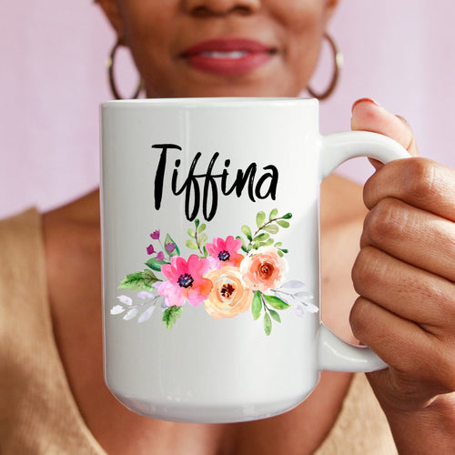 Personalised Name Mug, Personalised Floral Mug, Gift For Her, Mothers Day Gift, Birthday Gift